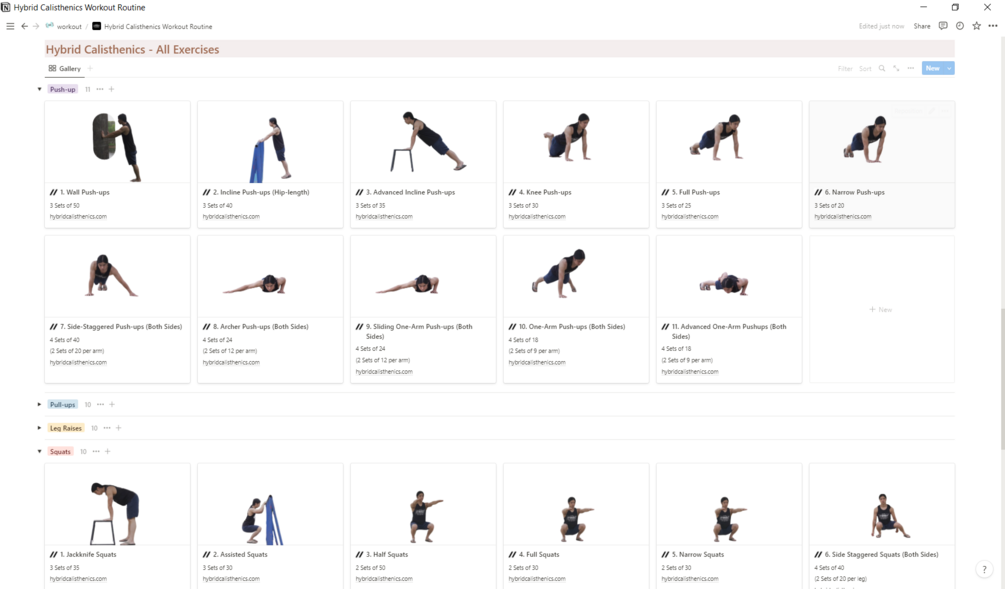 Hybrid Calisthenics - Exercises Tracker (Notion)